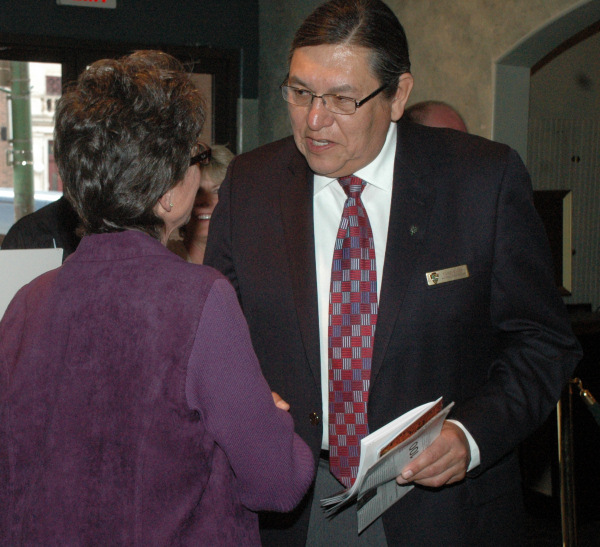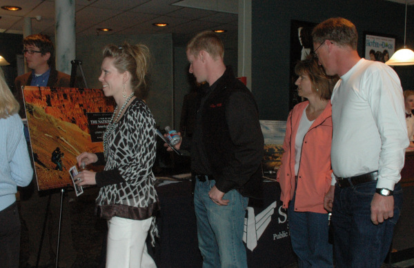 SDPB's Charles Michael Ray greets guests at the public film preview event