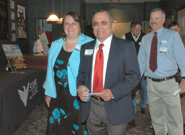 Vidal Davila, superintendent of Wind Cave National Park and his wife as they arrive for the film preview